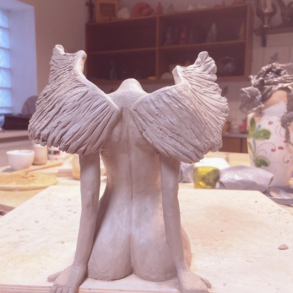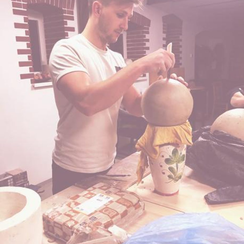 – prace są suszone (około 10 dni) po czym wypalone na biskwit w temp. 980 °C, co sprawi ze są trwałe i gotowe do szkliwienia.